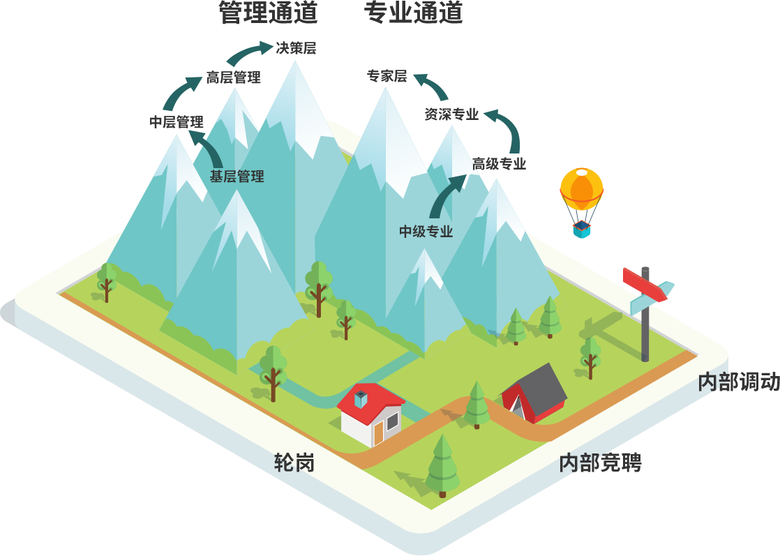 在这里,您可以根据自己的兴趣爱好特长,选择适合自己的职业发展路线,您可以钻研某一领域,成为该领域的资深专家;或是积累管理经验,往综合管理方向发展。在您前进的路上,我们会竭尽所能为您提供职业发展所需要的各种机会和资源支持。